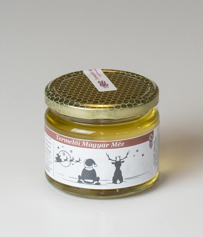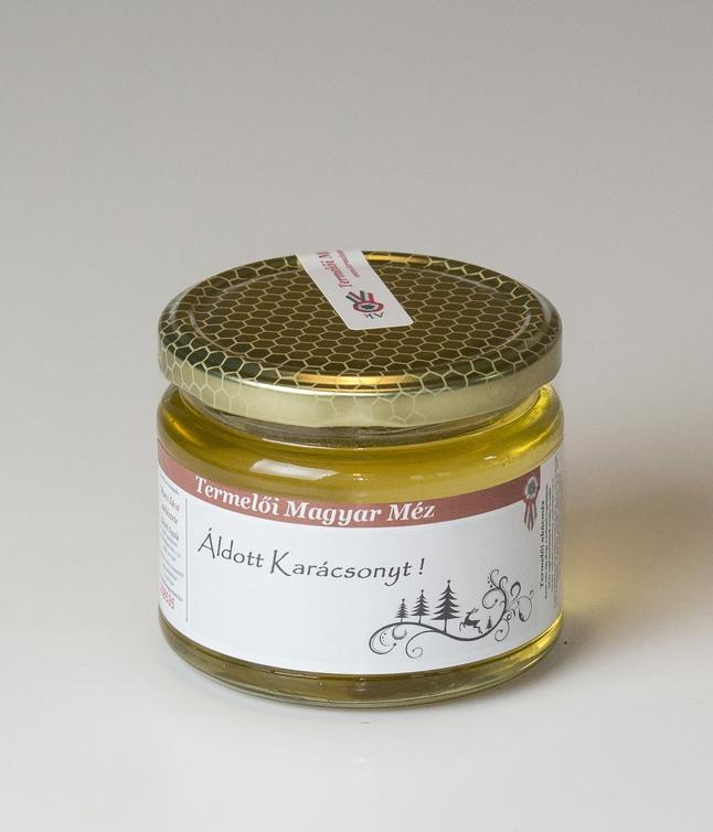 Alkalmi címkés 0,4 kg-os akácmézünk, mely egy édes, egészséges képeslapként is használható!
